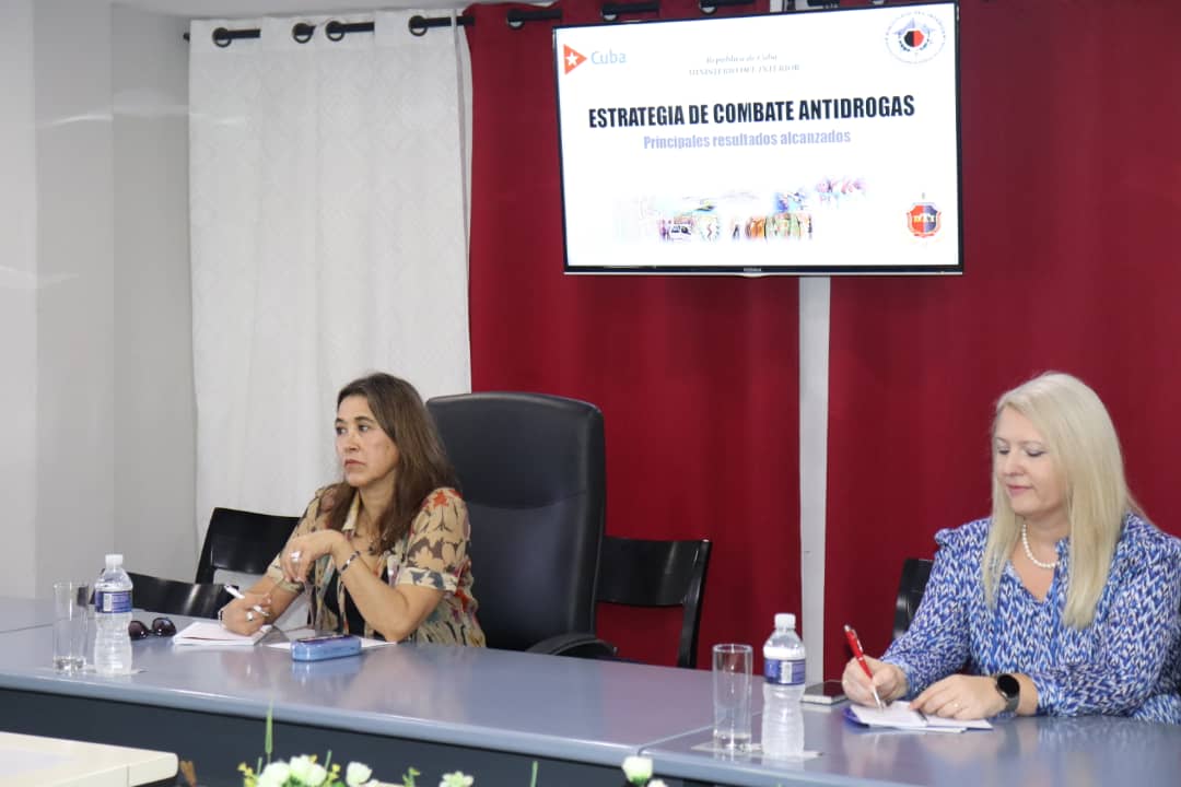 Junto a representantes del Ministerio del Interior y de la Aduana General de la República sostuvieron un fructífero intercambio sobre las principales estrategias que realiza el Gobierno cubano para prevenir el consumo de drogas, con el principio de Tolerancia Cero a este flagelo.